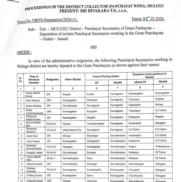 ములుగు జిల్లాలో పంచాయతీ కార్యదర్శులు భారీగా బదిలీ ములుగు, మార్చి 26 తెలంగాణ జ్యోతి : జిల్లా పంచాయతీ విభాగంలో కీలక మార్పులు చోటు చేసుకున్నాయి. పరిపాలనా …